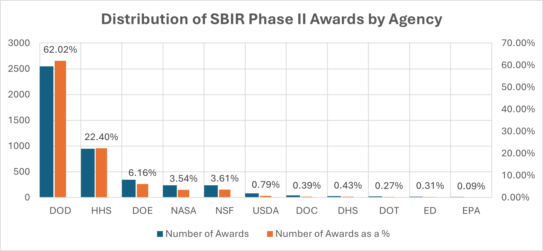 Adding to the complexity, DoD SBIR contracts have the longest average duration at 59 months – nearly five years of sustained compliance requirements throughout the innovation cycle.